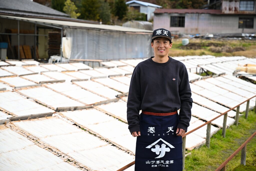 厳しい冬がつくる寒天は、恵那山麓の自然と人が結んだ結晶です。次の百年へ向けて、私は今年も山岡の冷たい風を受けながら、黙々と寒天づくりに向き合っています。
